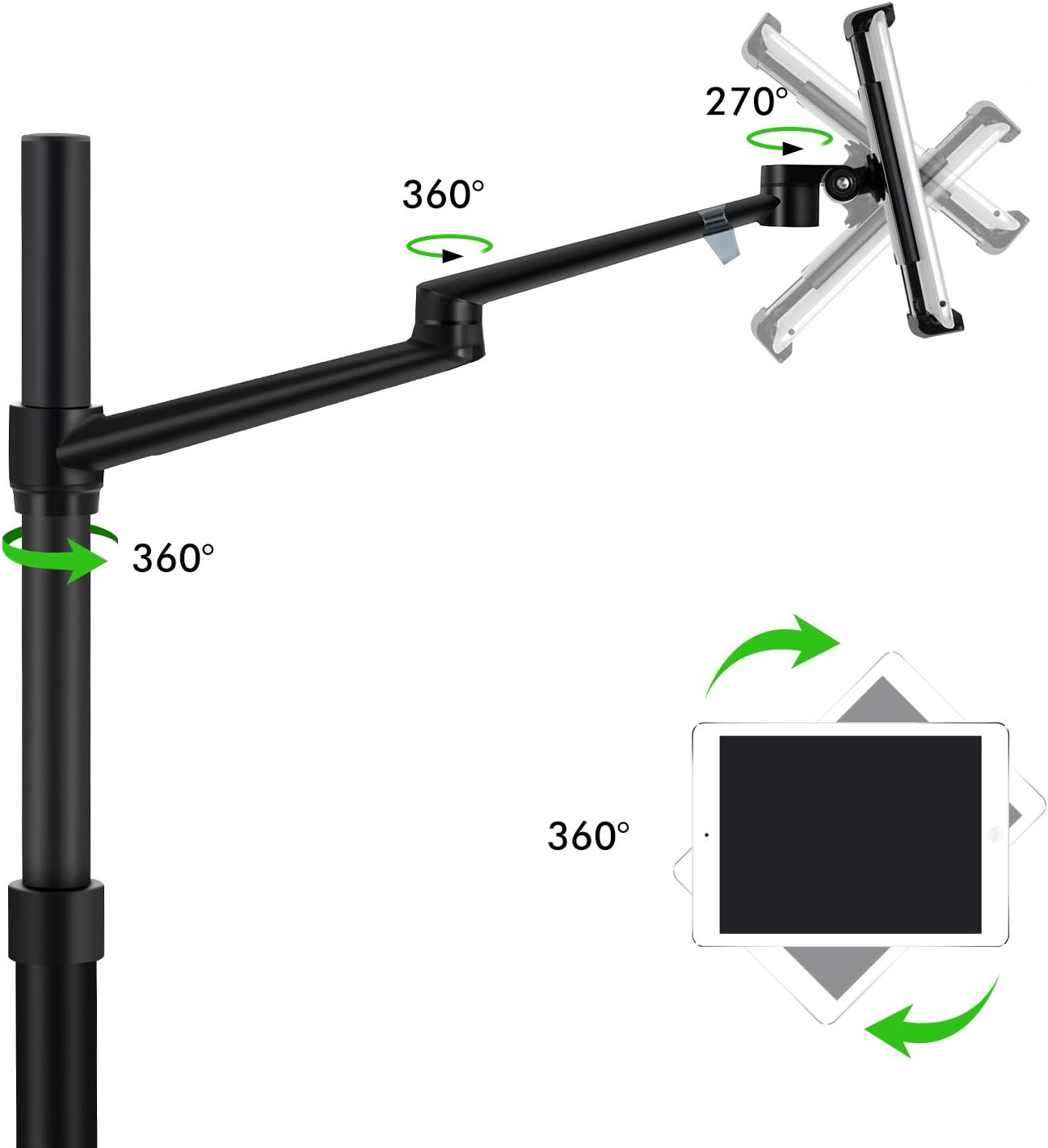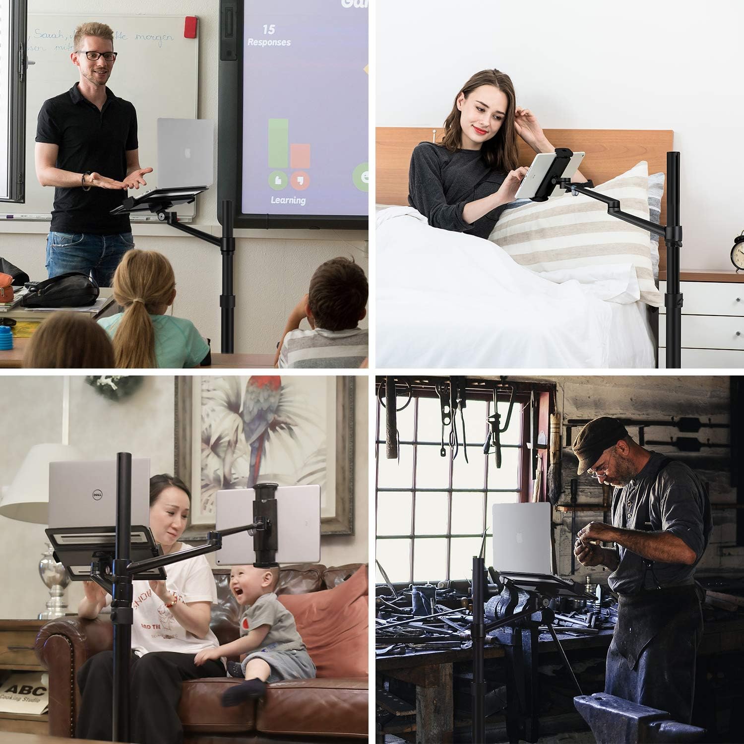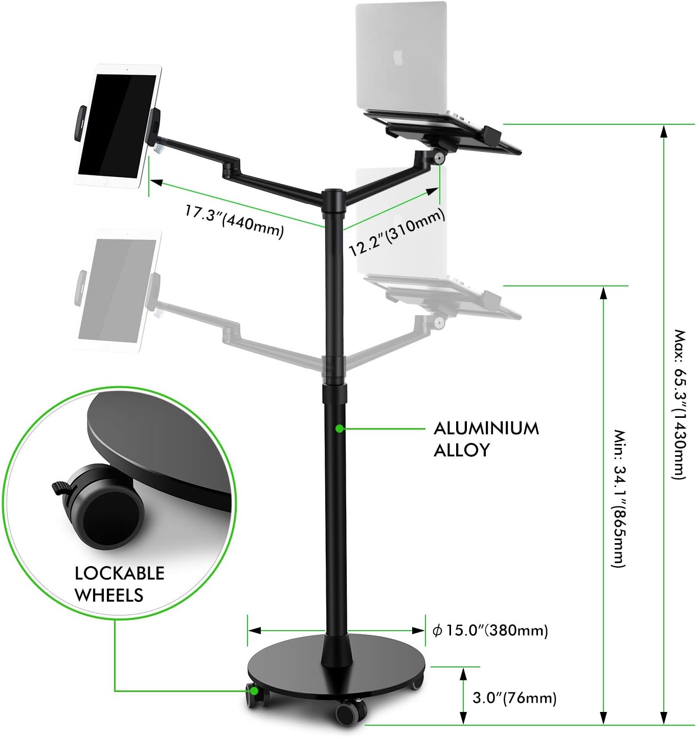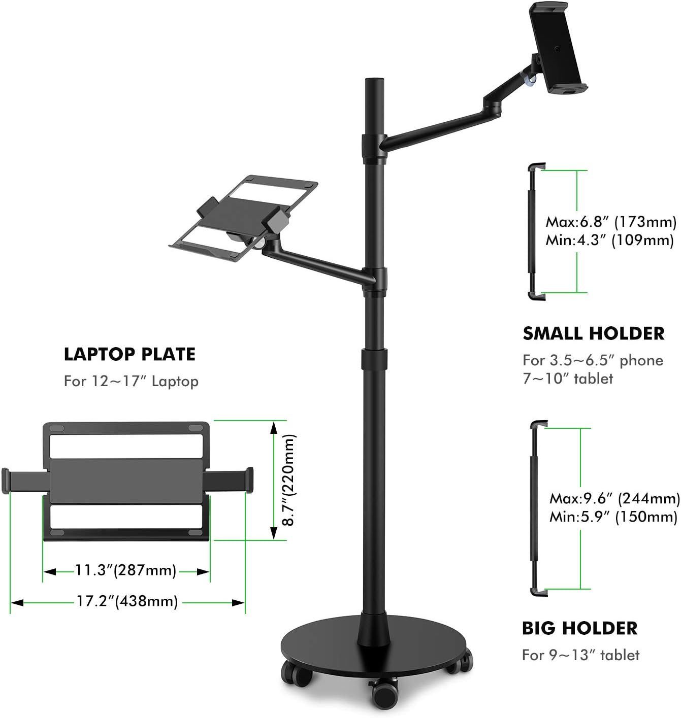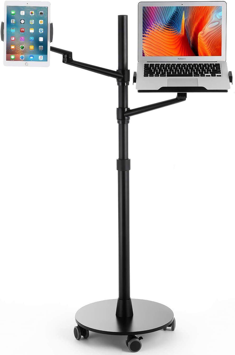 UPERGO 2 in 1 Rolling Adjustable Dual arm Tablet and Laptop Floor Stand , Compatible with 7 inch ti 13 inch iPads and Tablets