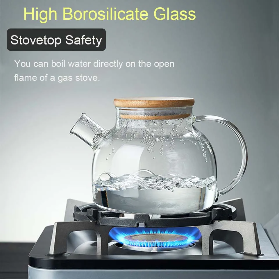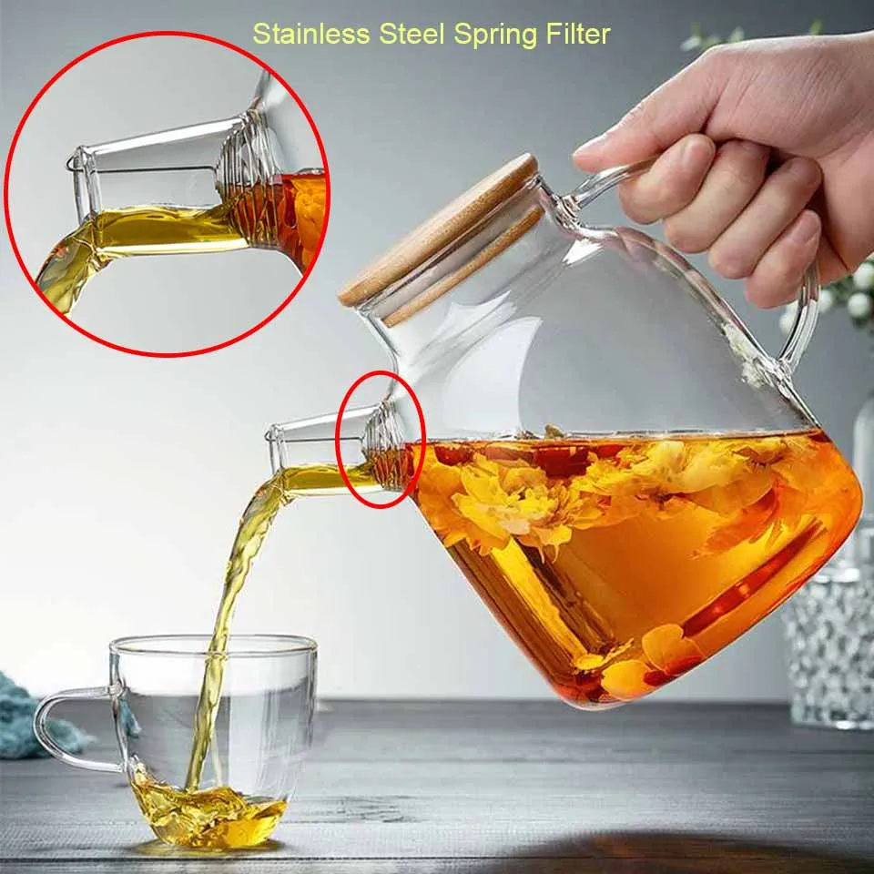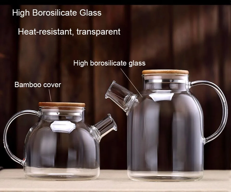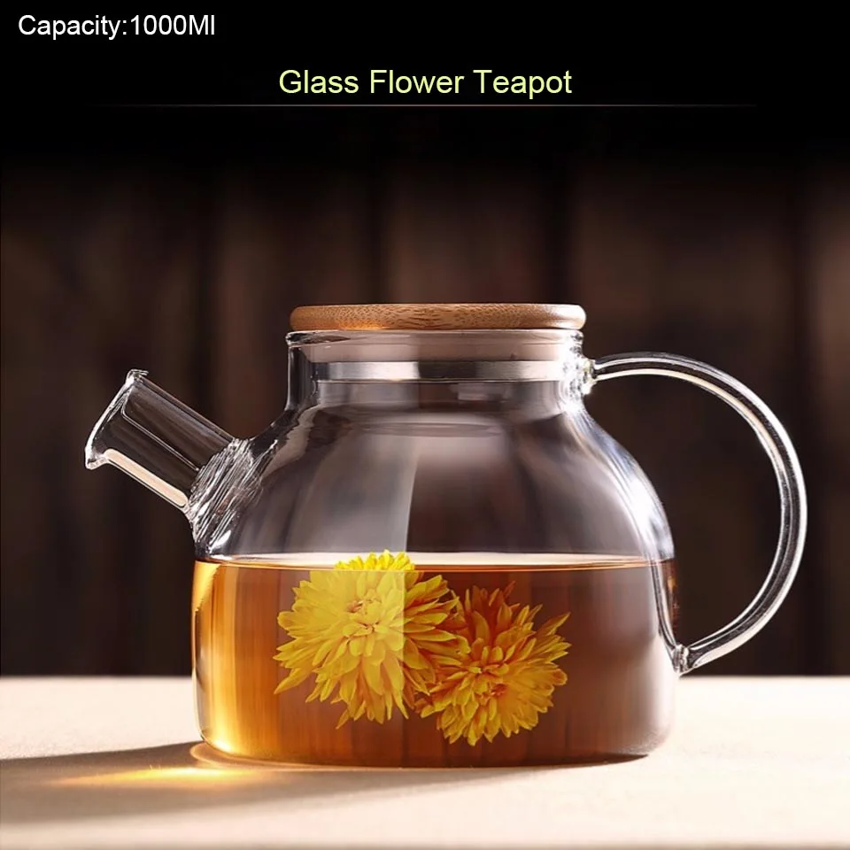 Heat Resistant Glass Tea set Flower Tea Kettle Large Clear Glass - 1.8L