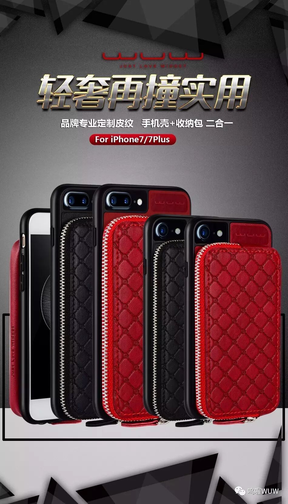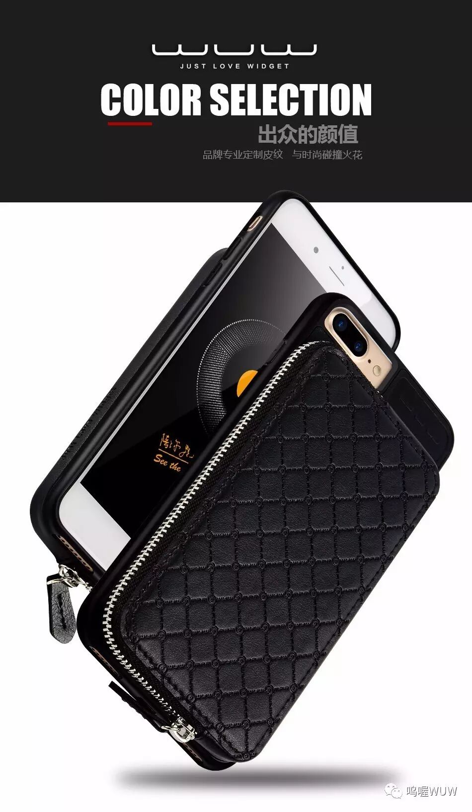 WUW Special Design Leather Wallet Case For iPhone 7 Plus / 8 Plus - Black