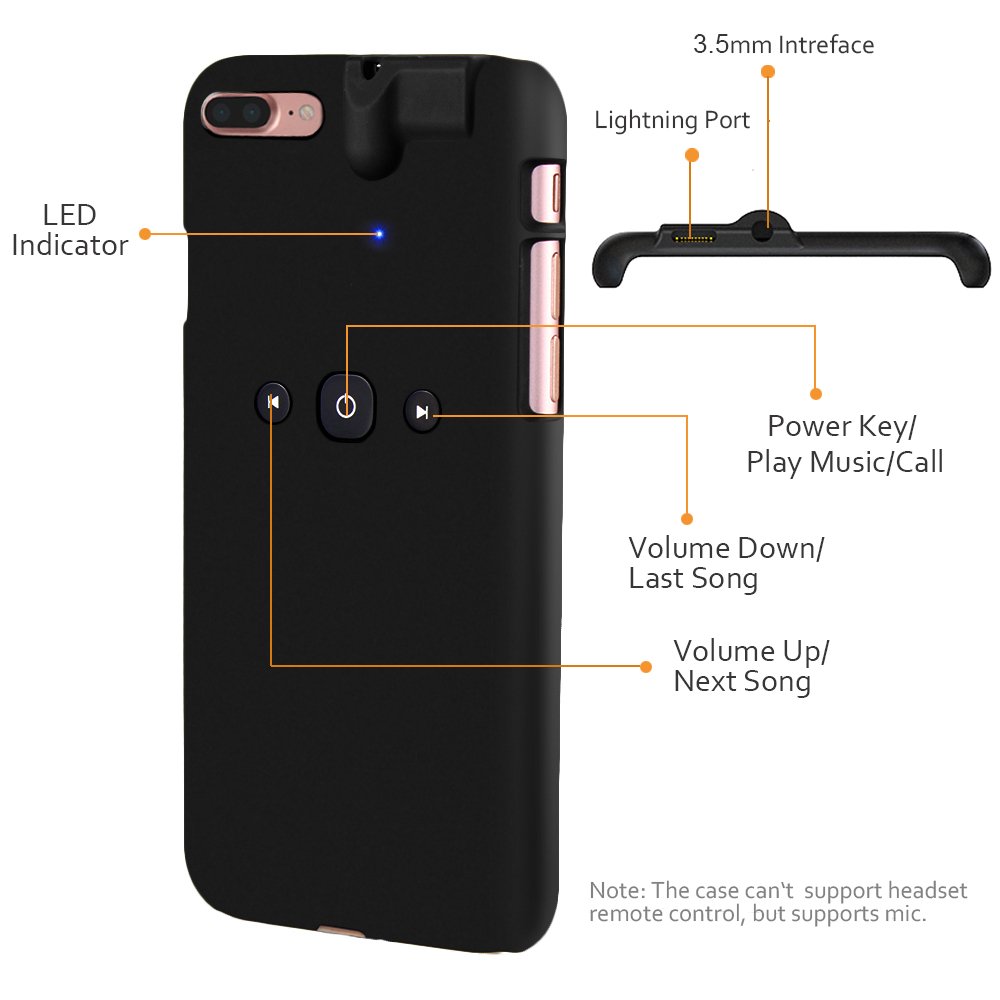 M-TECH Music Player & Calling Control Case For iPhone 7 Plus / 8 Plus - Black
