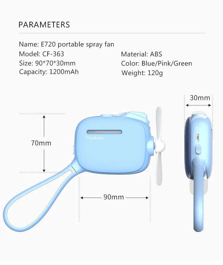 Mcdodo Portable Mini USB Handheld Humidifier Mist Water Spray Fan - Green