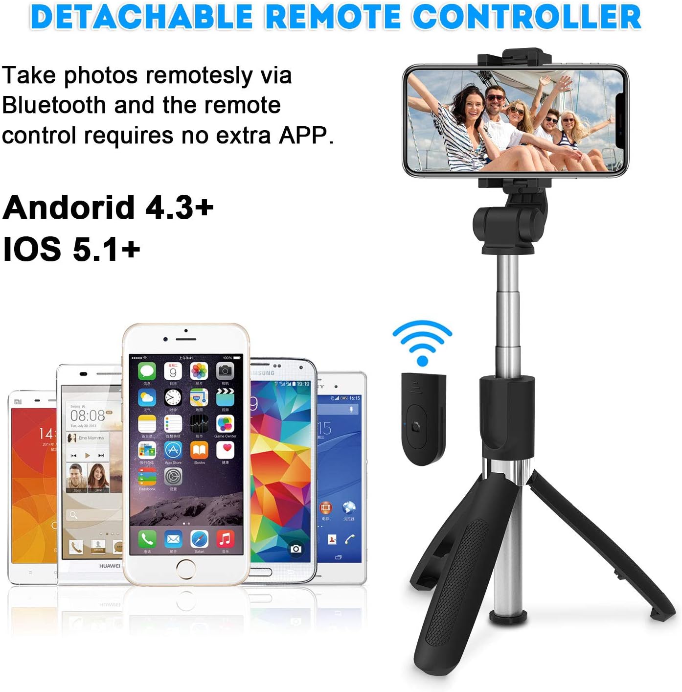 Selfie Stick Tripod, Extendable Bluetooth Selfie Stick with Detachable Wireless Remote