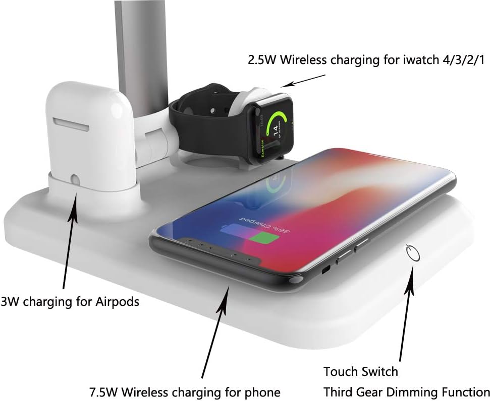 4 in 1 Wireless Charger For iPhone , Airpods , Apple Watch and LED Desk Lamp with USB Charging Port - White
