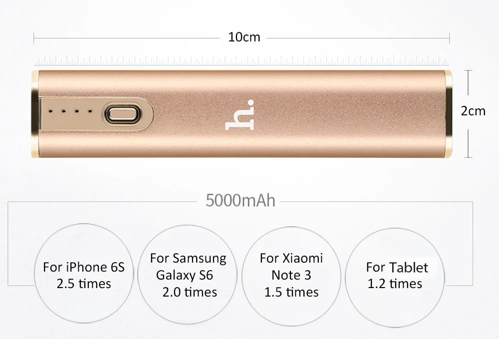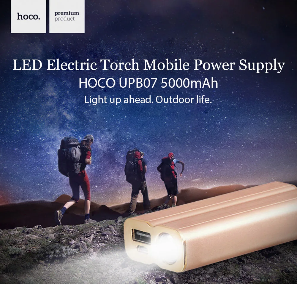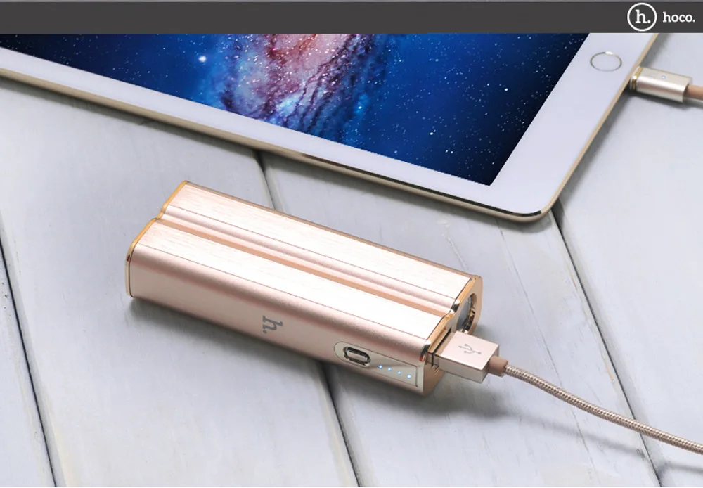 HOCO 5000mAh Portable Power Bank with LED Light - Gold