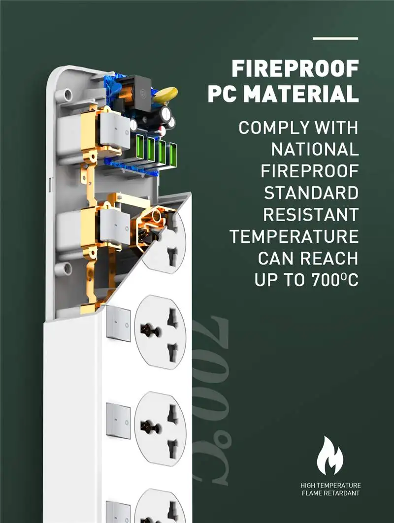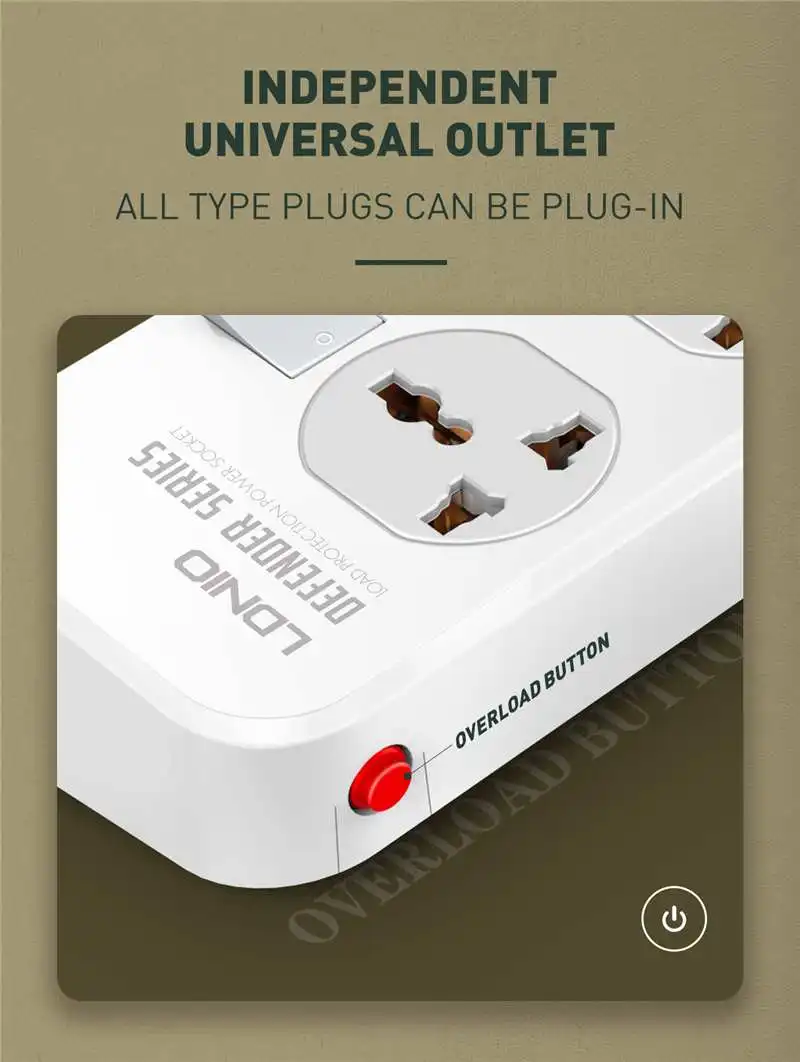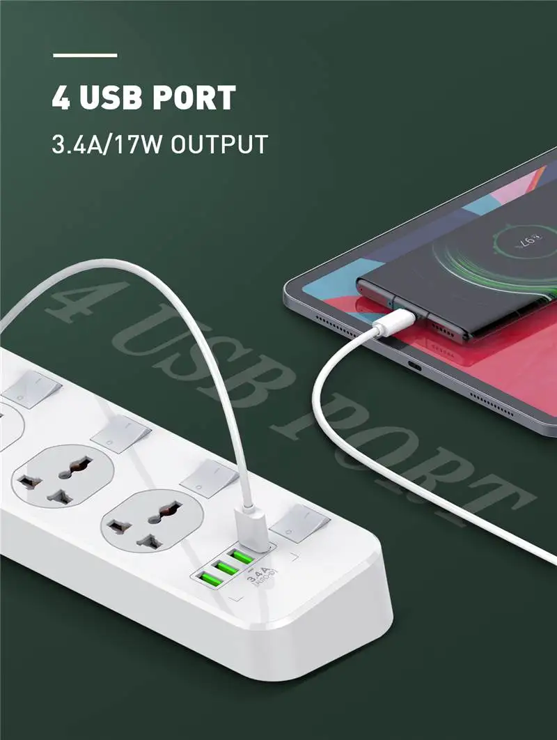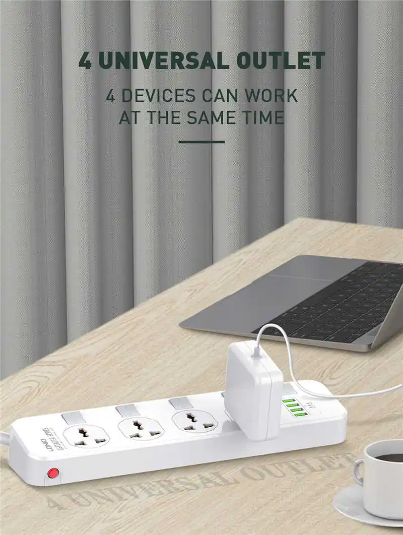 LDNIO SC4408 2-Meter Extension Cord with 4 Socket Outlets and 4 USB 2500W 10A Defender Series