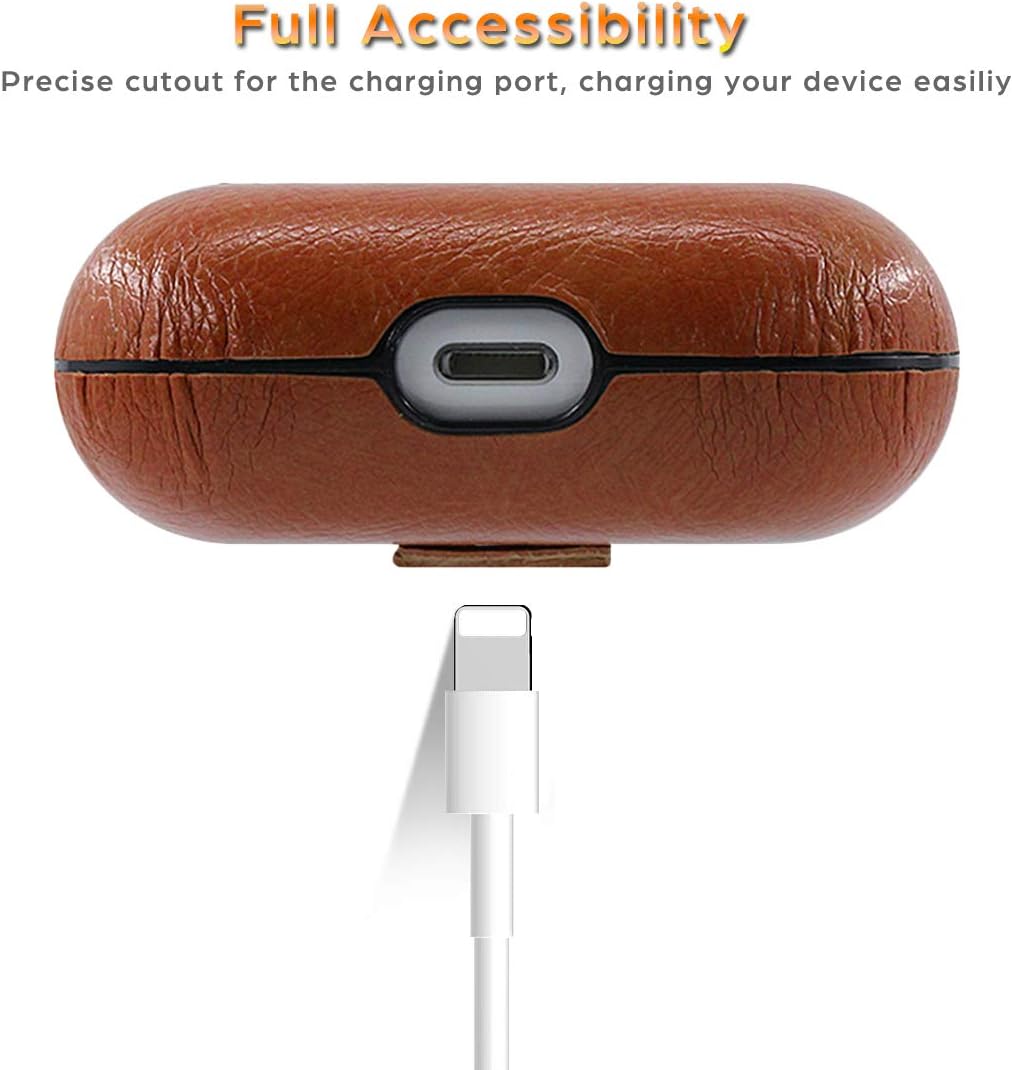 Leather Case for Apple AirPods Pro with Keychain Hook Up - Light Brown