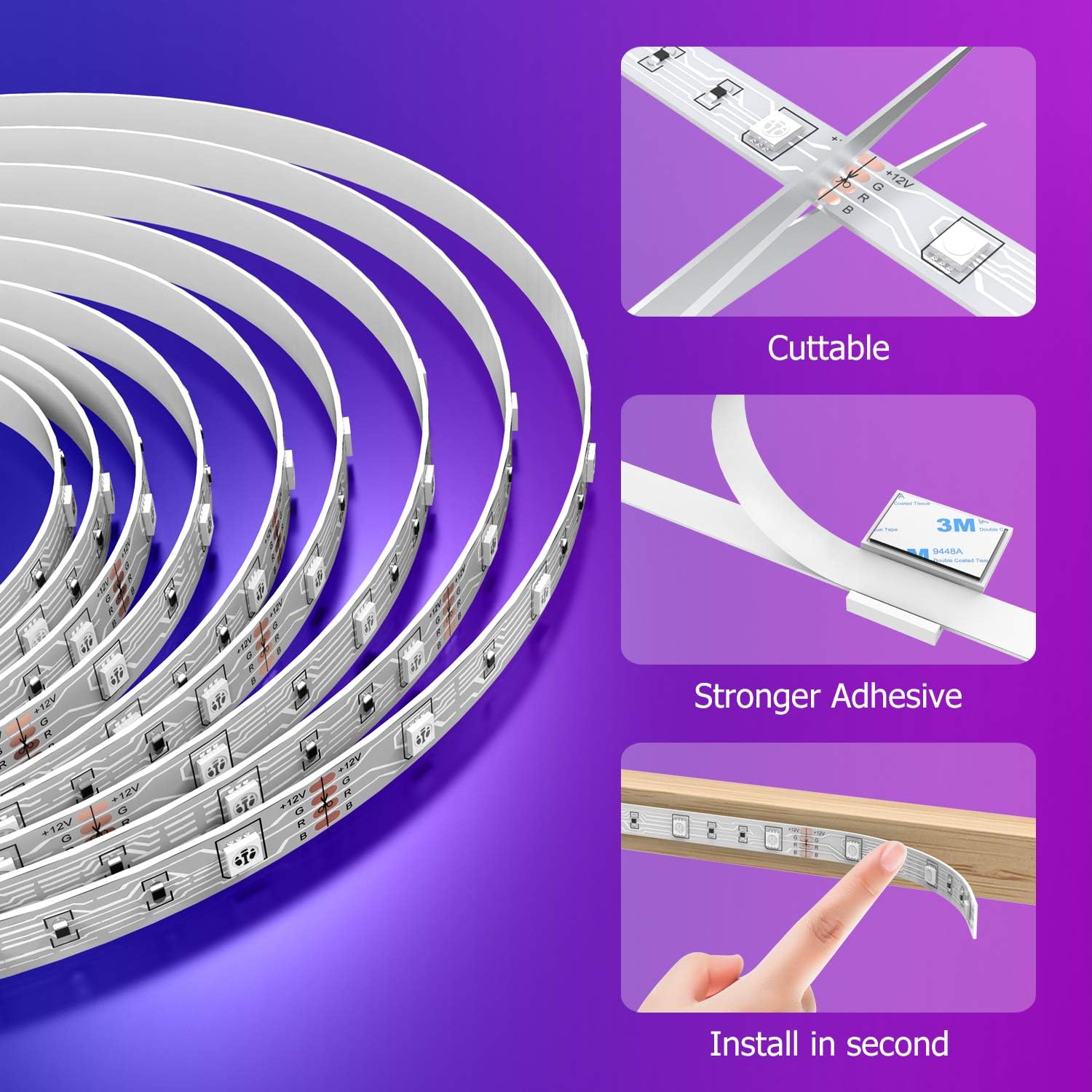 LED Strip Lights with Music Sync, 40 Keys Remote Control and App Control SMD 5050 Color Changing RGB LED Light USB - 5 Meters