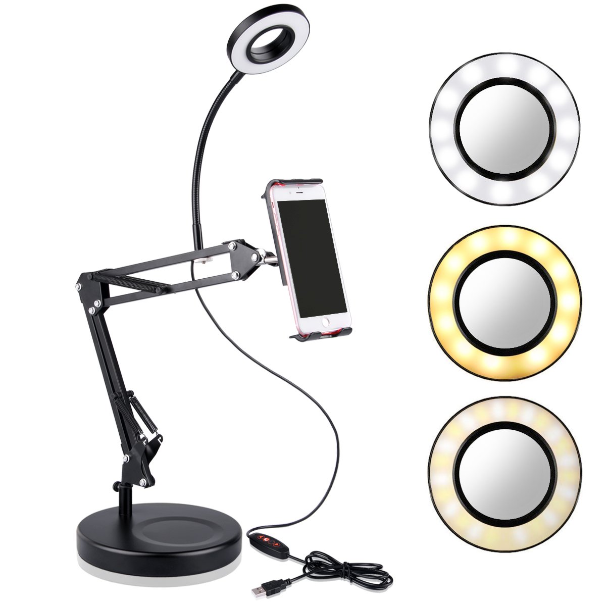 Mobile Phone Holder with Selfie Ring Light for Live Stream