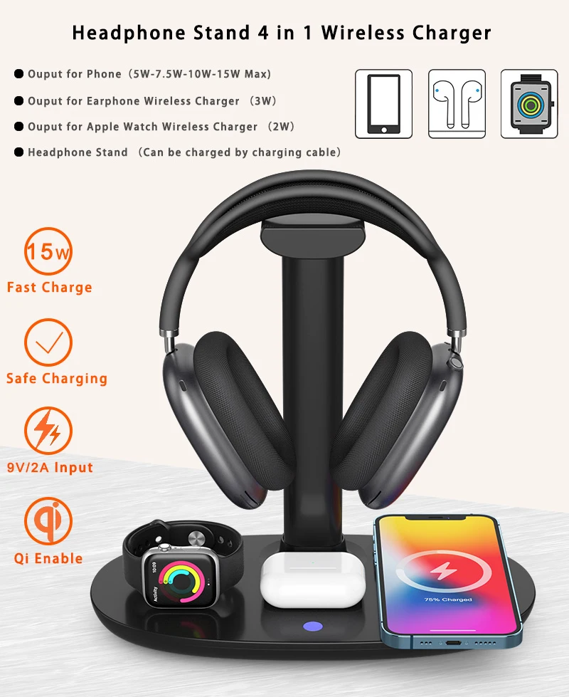 4 in 1 Headset Stand Wireless Charger Headphone Holder
