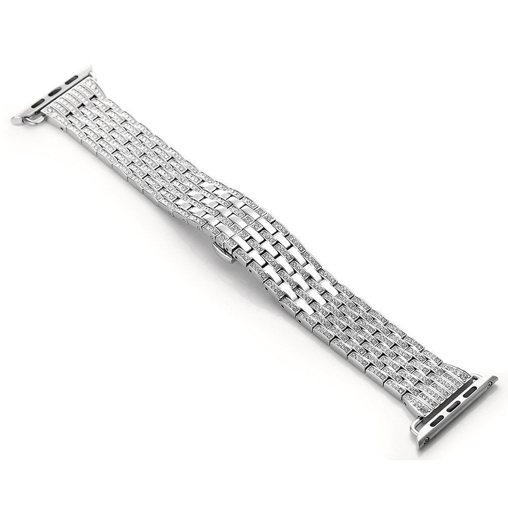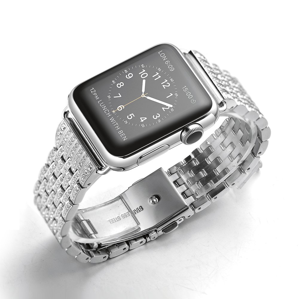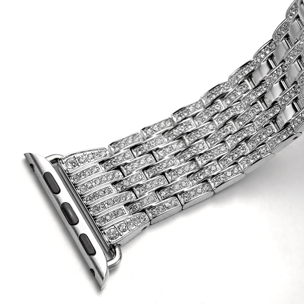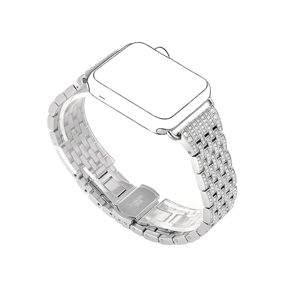 CotEetCI Luxury Alloy Crystal Rhinestone Diamond Bling Stainless Steel 42MM Apple Watch Band - Silver