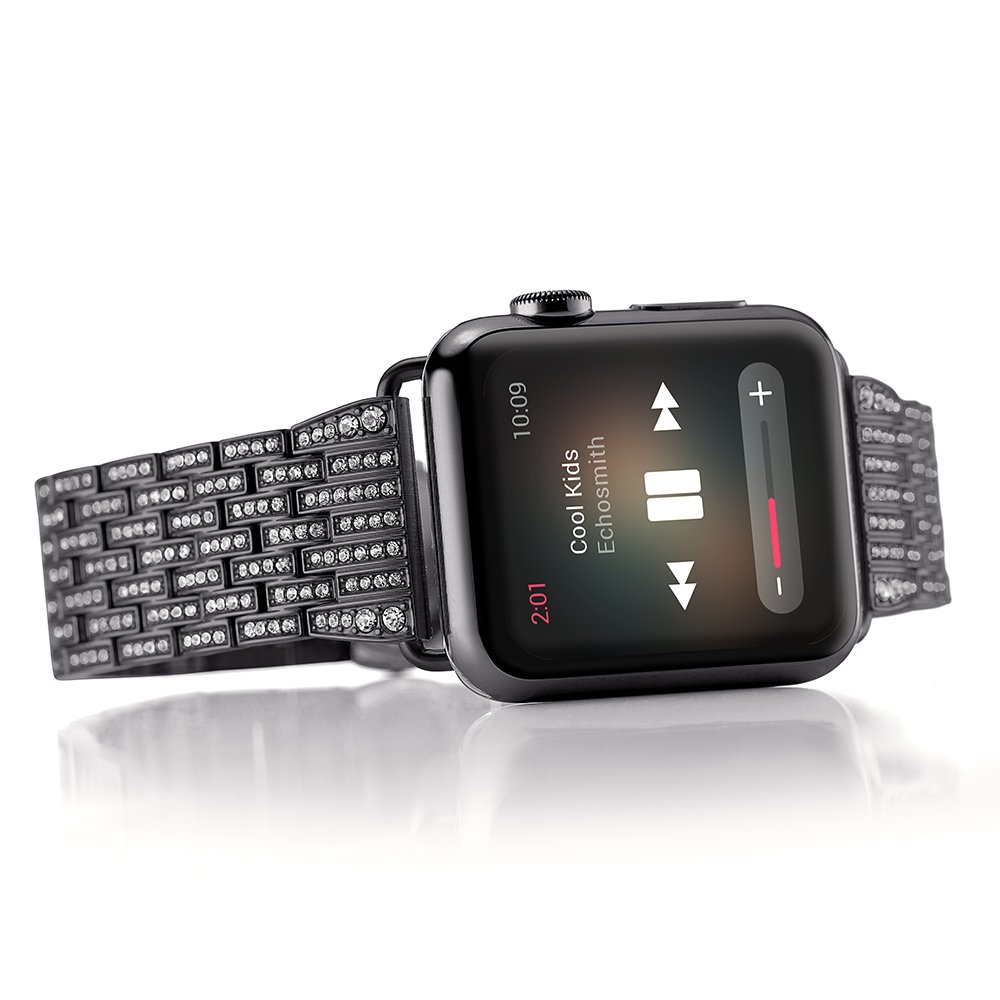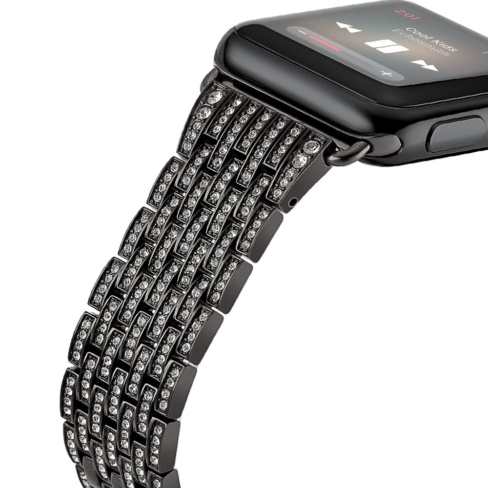 CotEetCI Luxury Alloy Crystal Rhinestone Diamond Bling Stainless Steel 42MM Apple Watch Band - Black