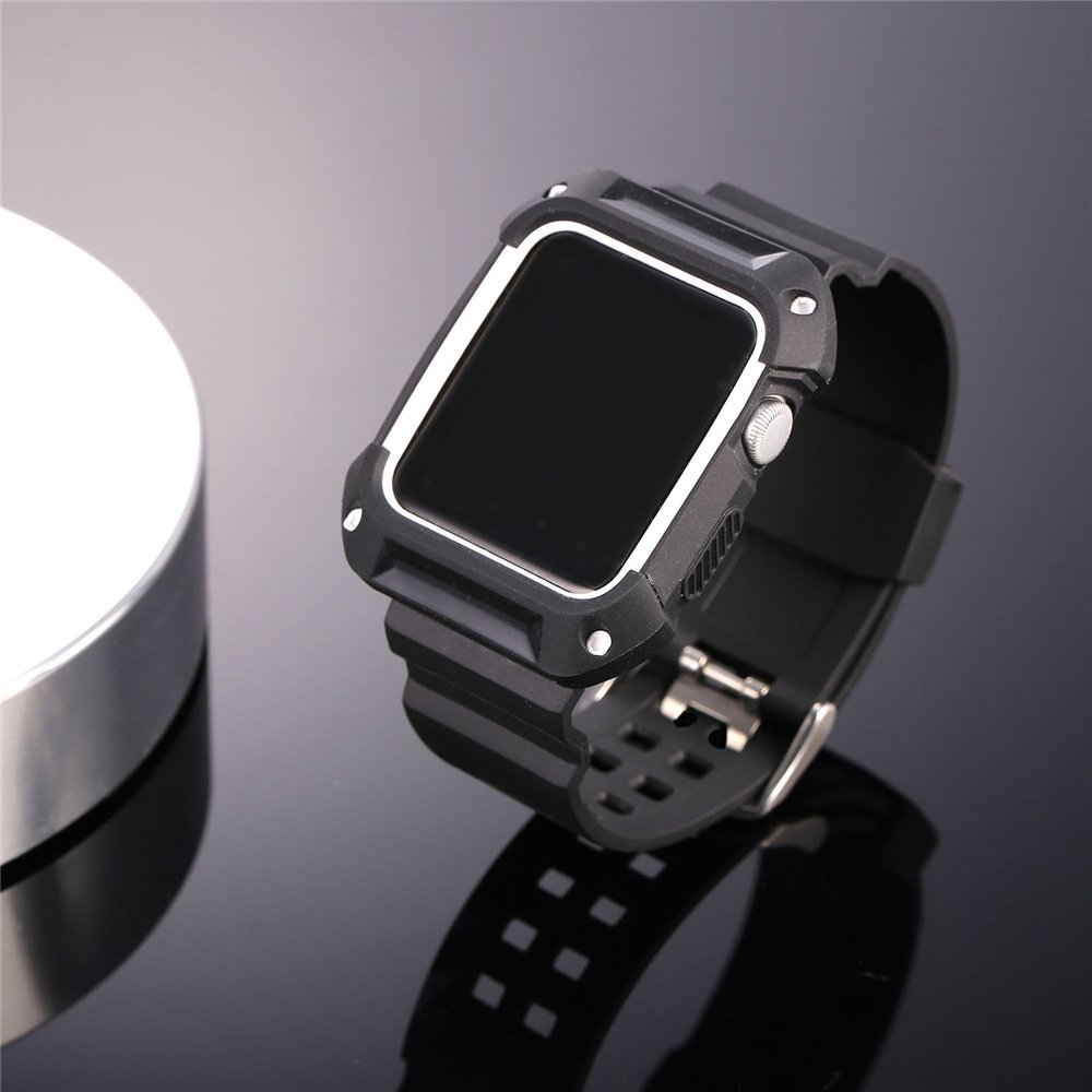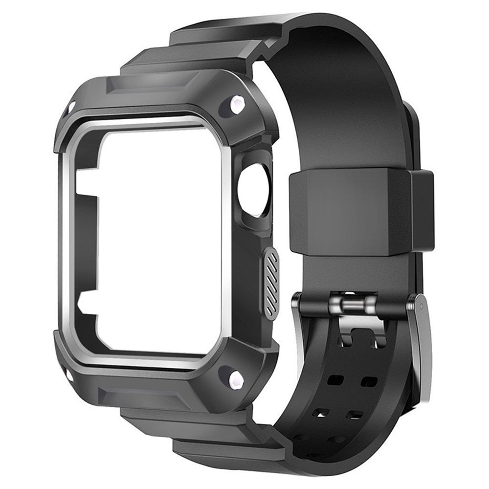 Rugged Protective Case with Strap for Apple Watch 42MM - Black/Silver