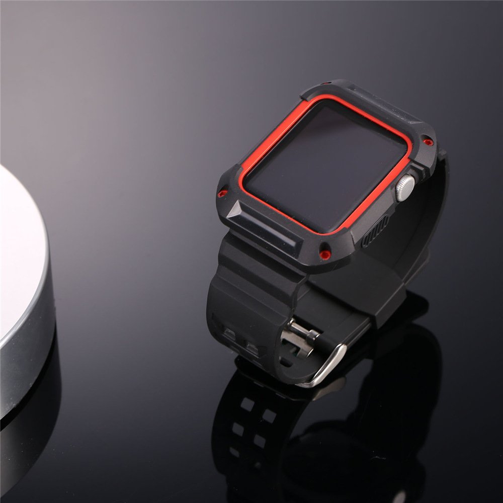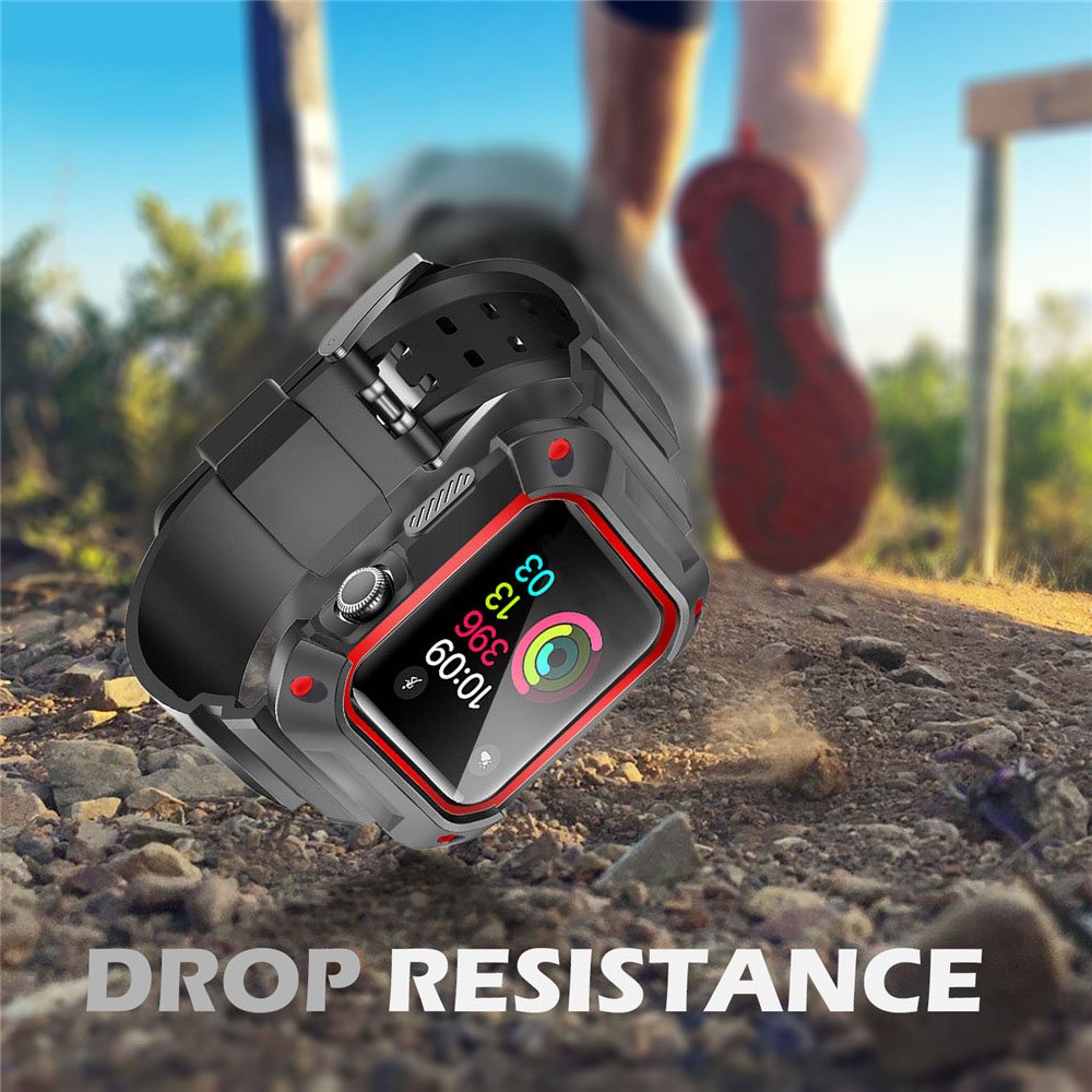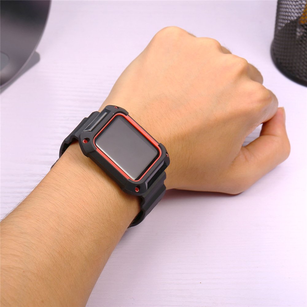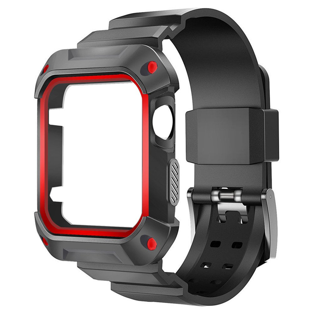 Rugged Protective Case with Strap for Apple Watch 42MM - Black/Red