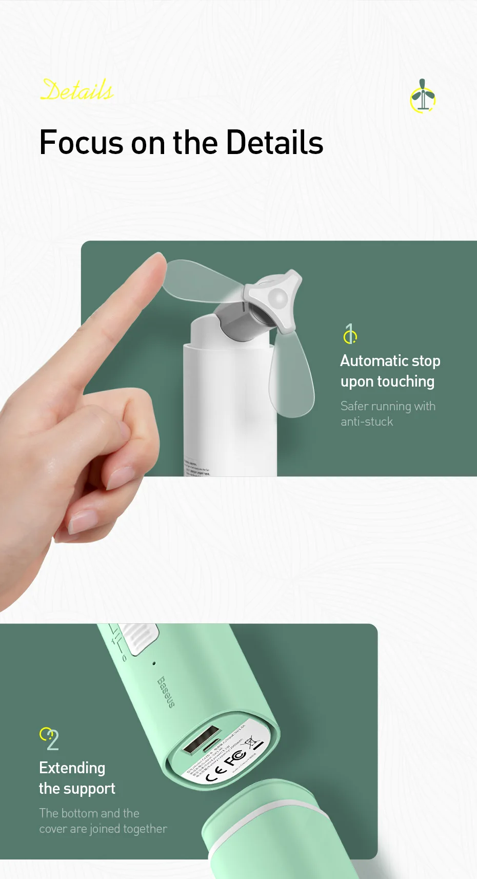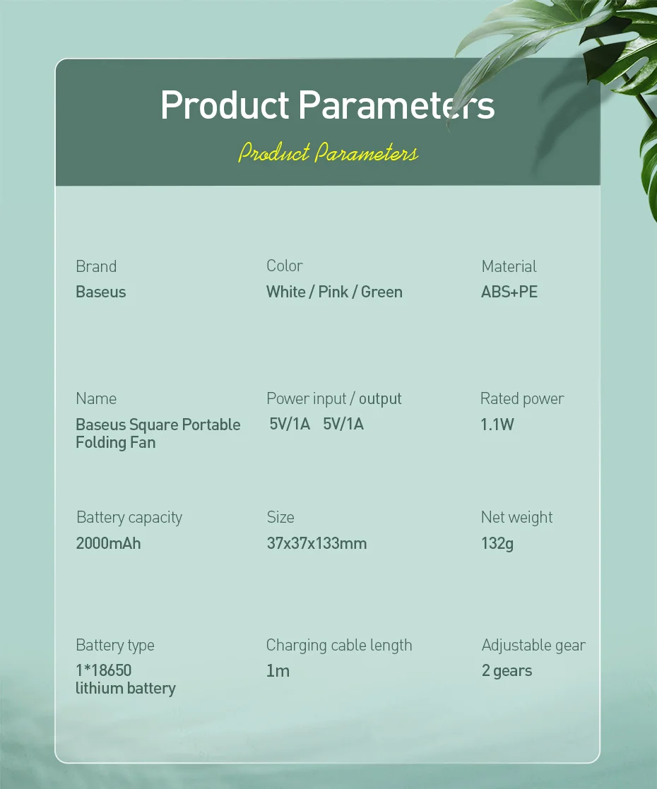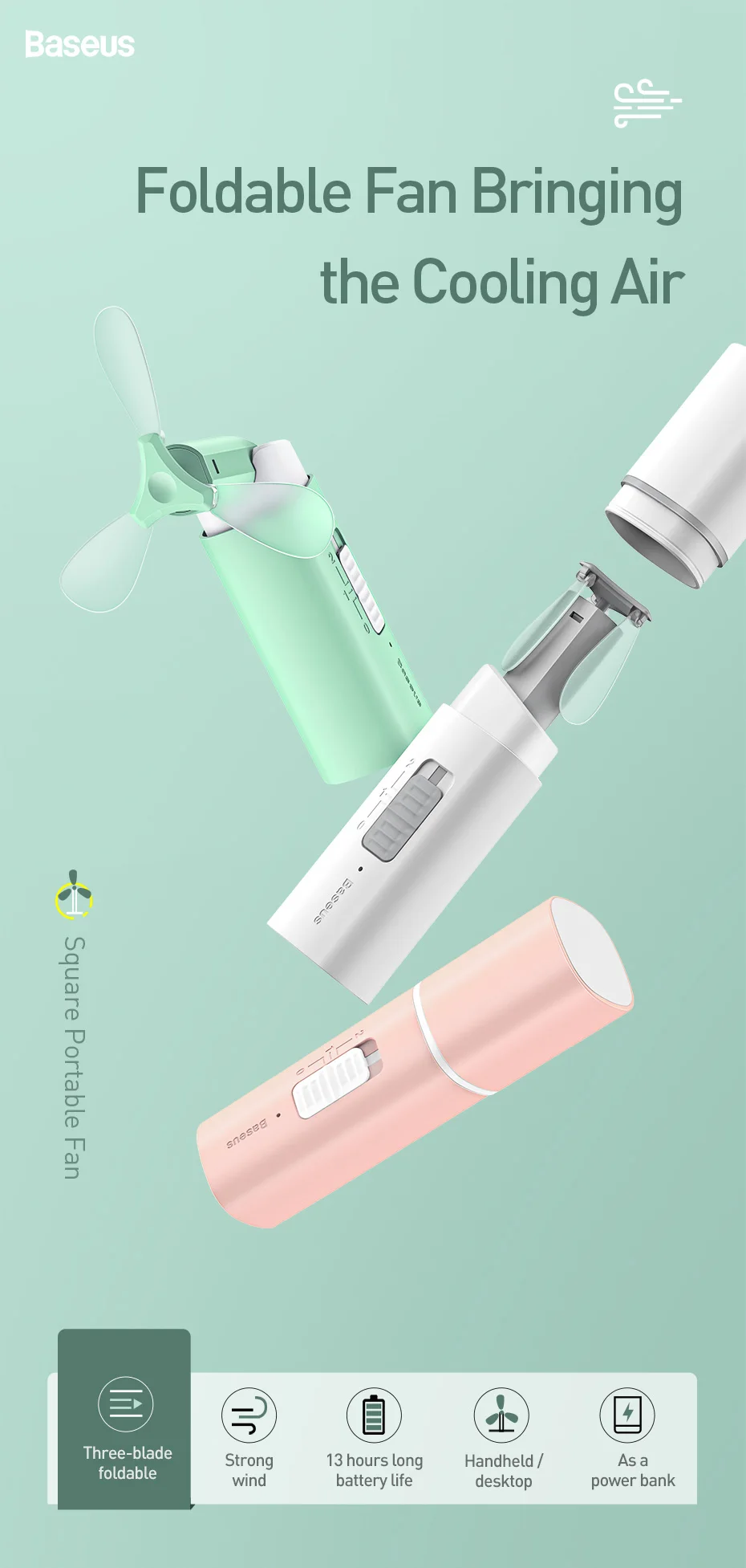Baseus Portable Mini Foldable Fan with 2000mAh Emergency Power Bank