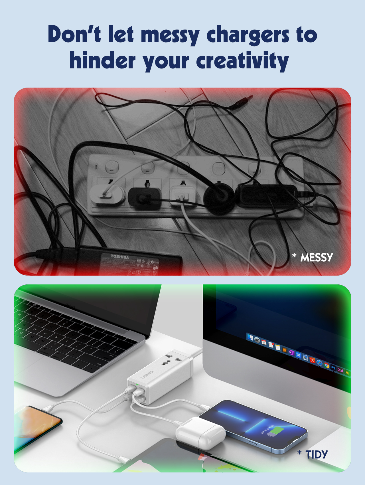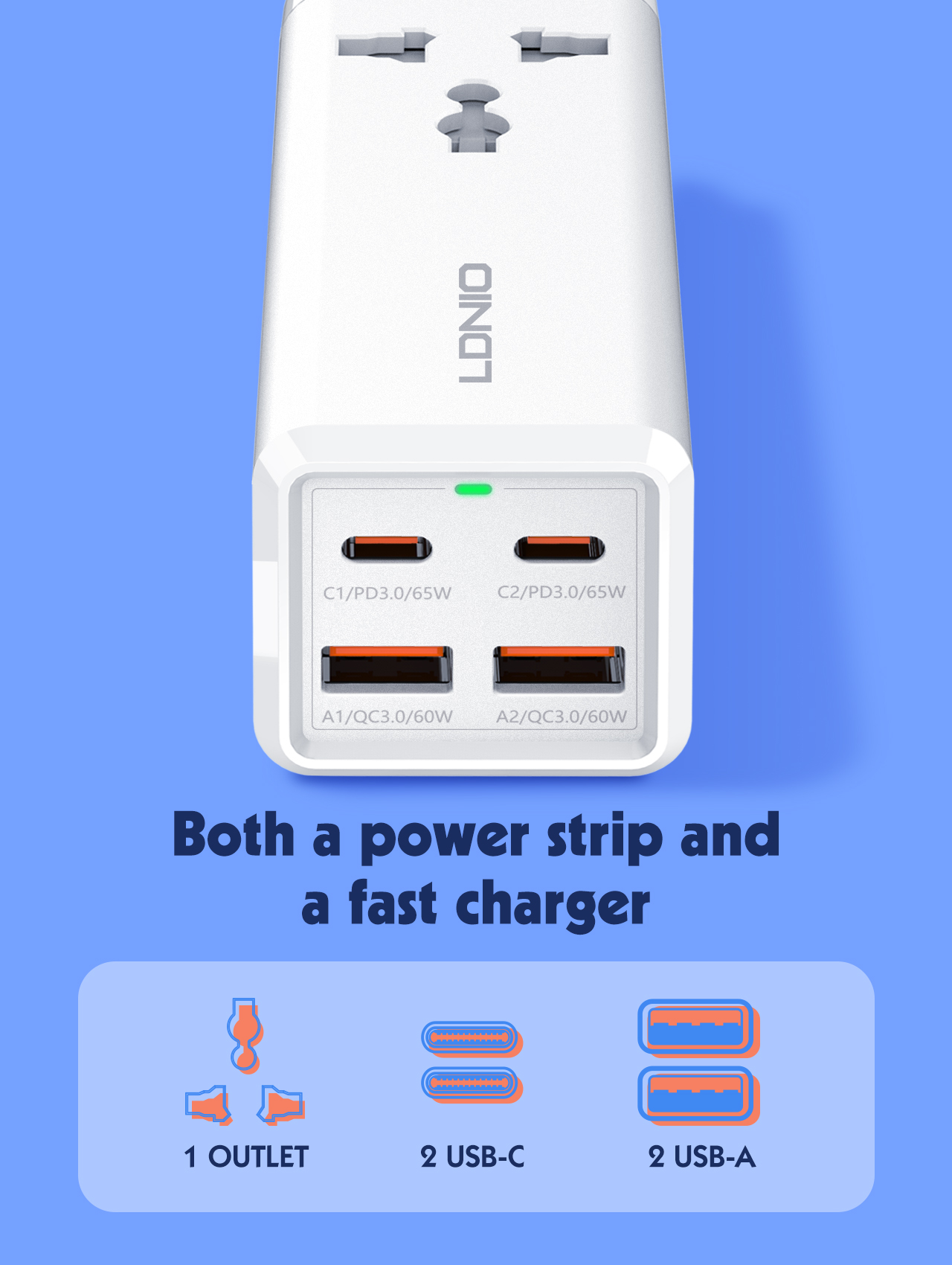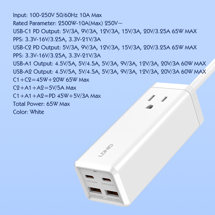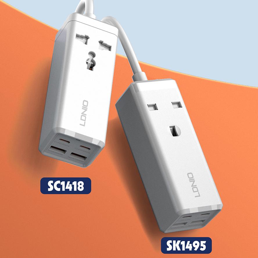 LDNIO SC1418 Portable Mini Smart Power Socket Extension , 1 Power Plug , 2 USB , 2 PD