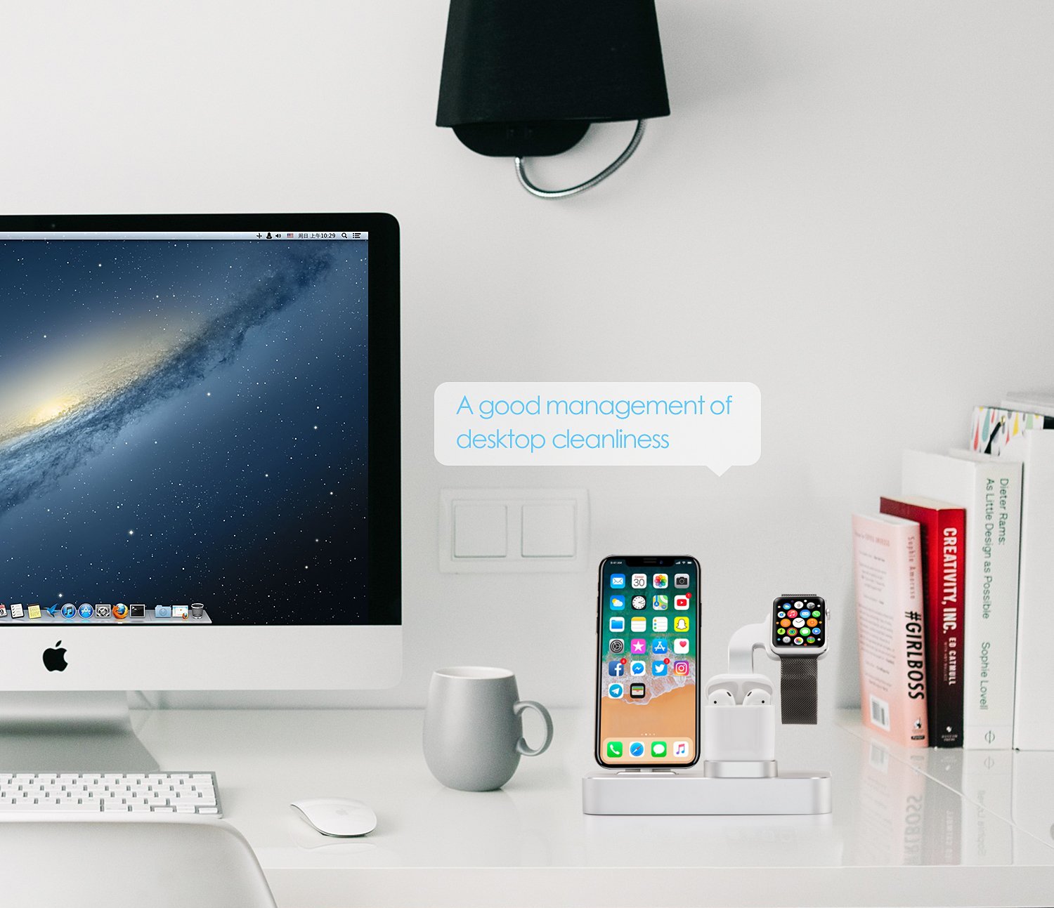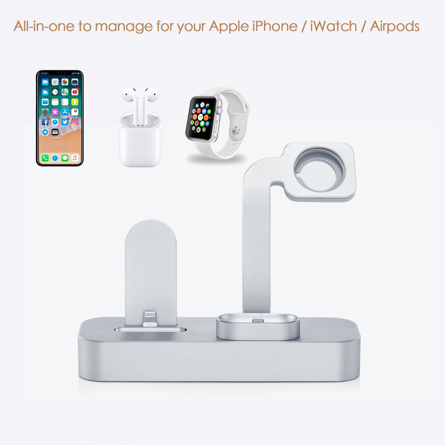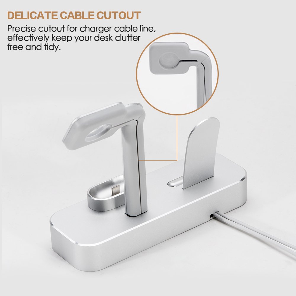 COTEetCI 3 in 1 Aluminum Charging Dock For Apple Airpods , iWatch and iPhones - Gray