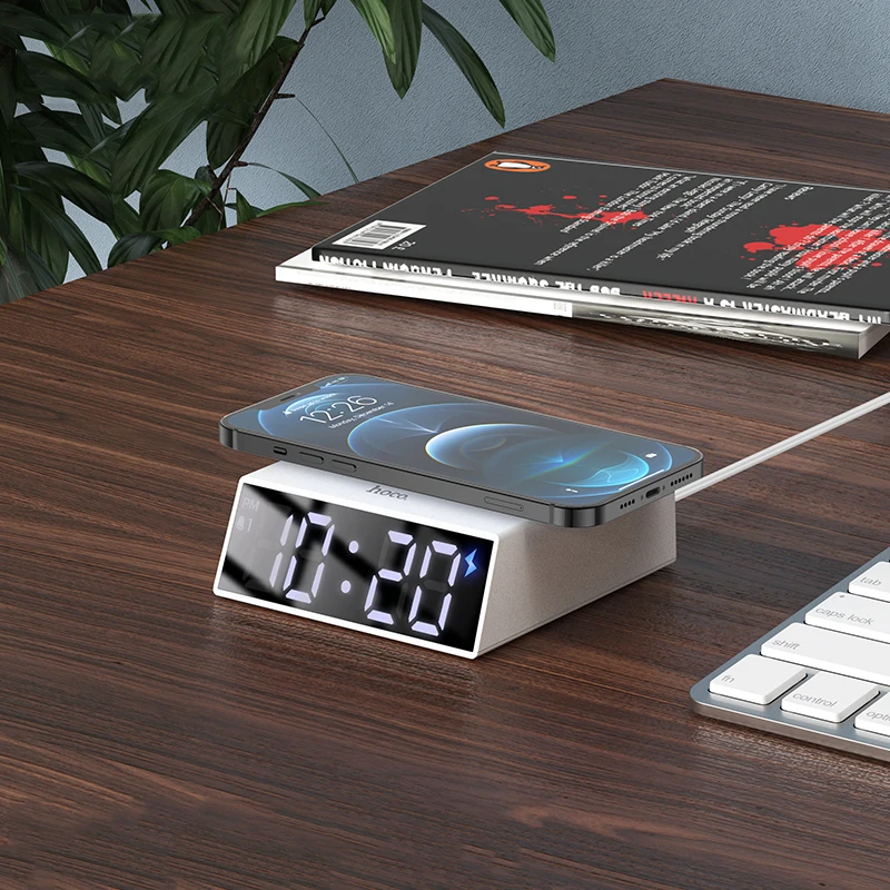 Hoco LED Desktop Alarm Clock with Wireless Charger
