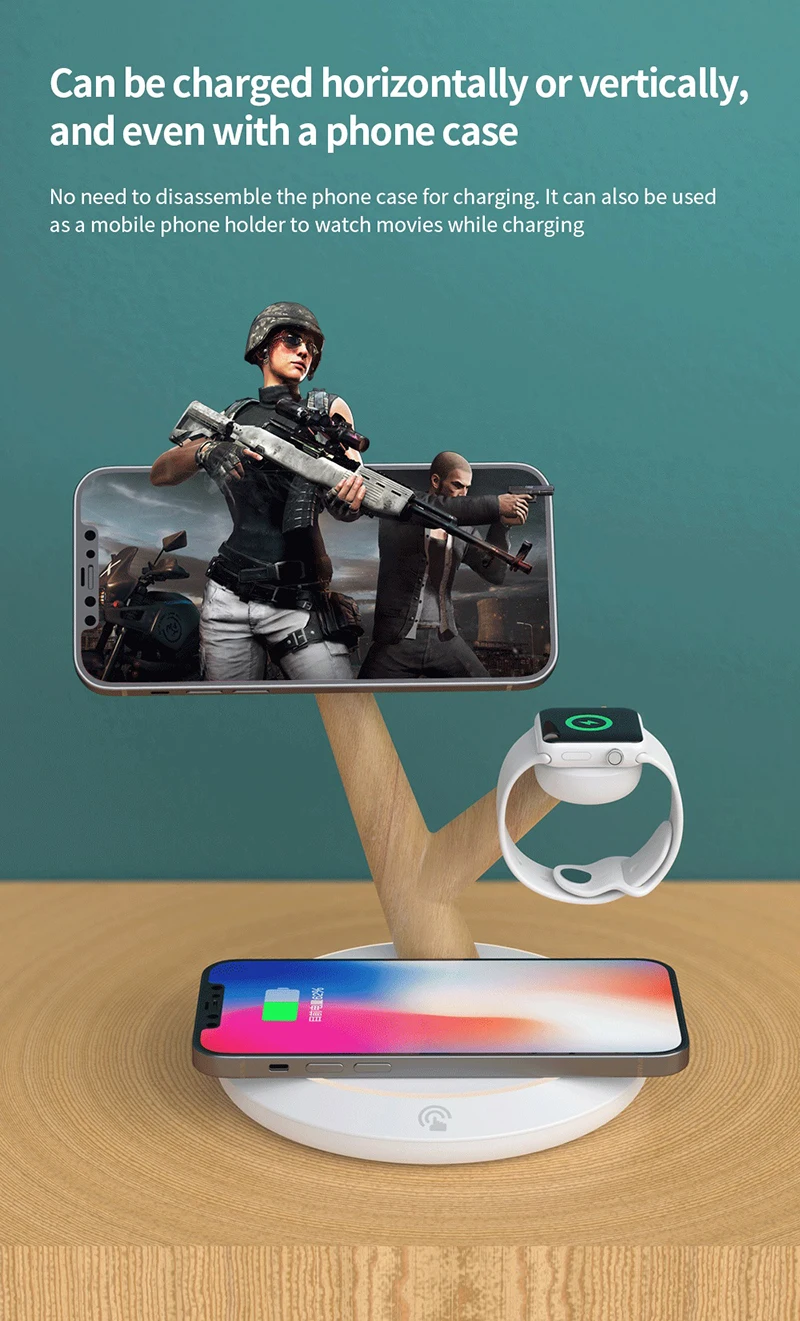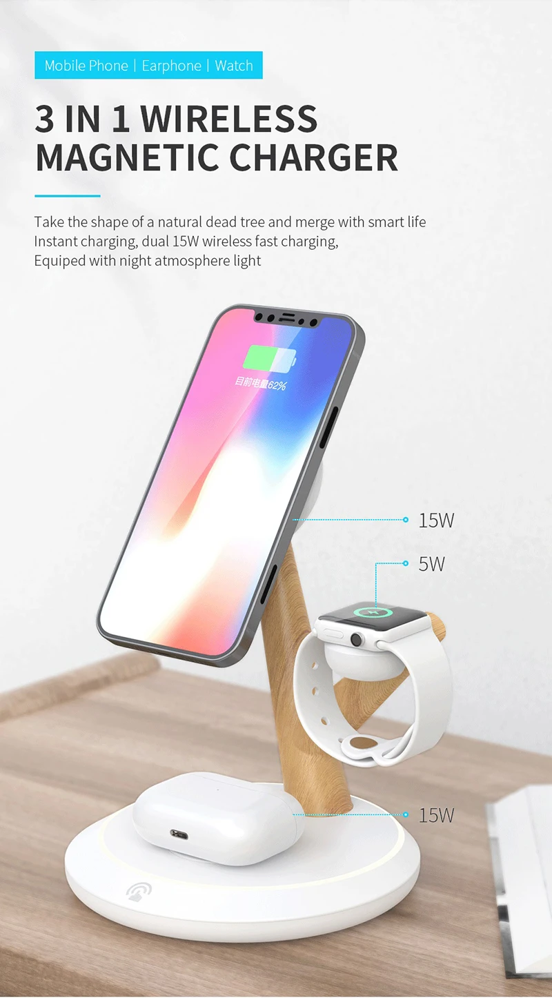 Natural Tree Branches 3 in 1 Folding Magnetic Wireless Charger - White